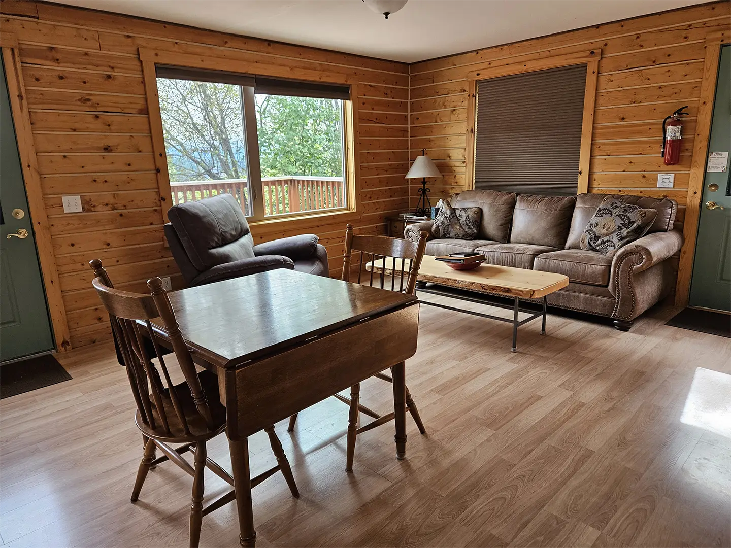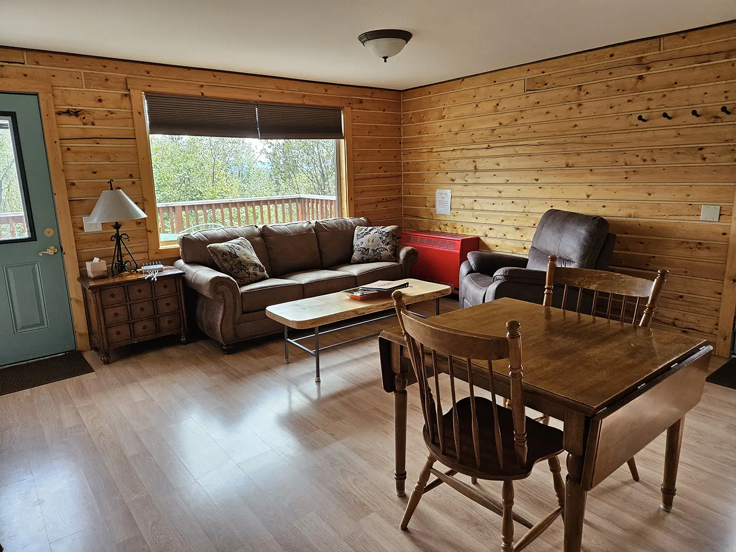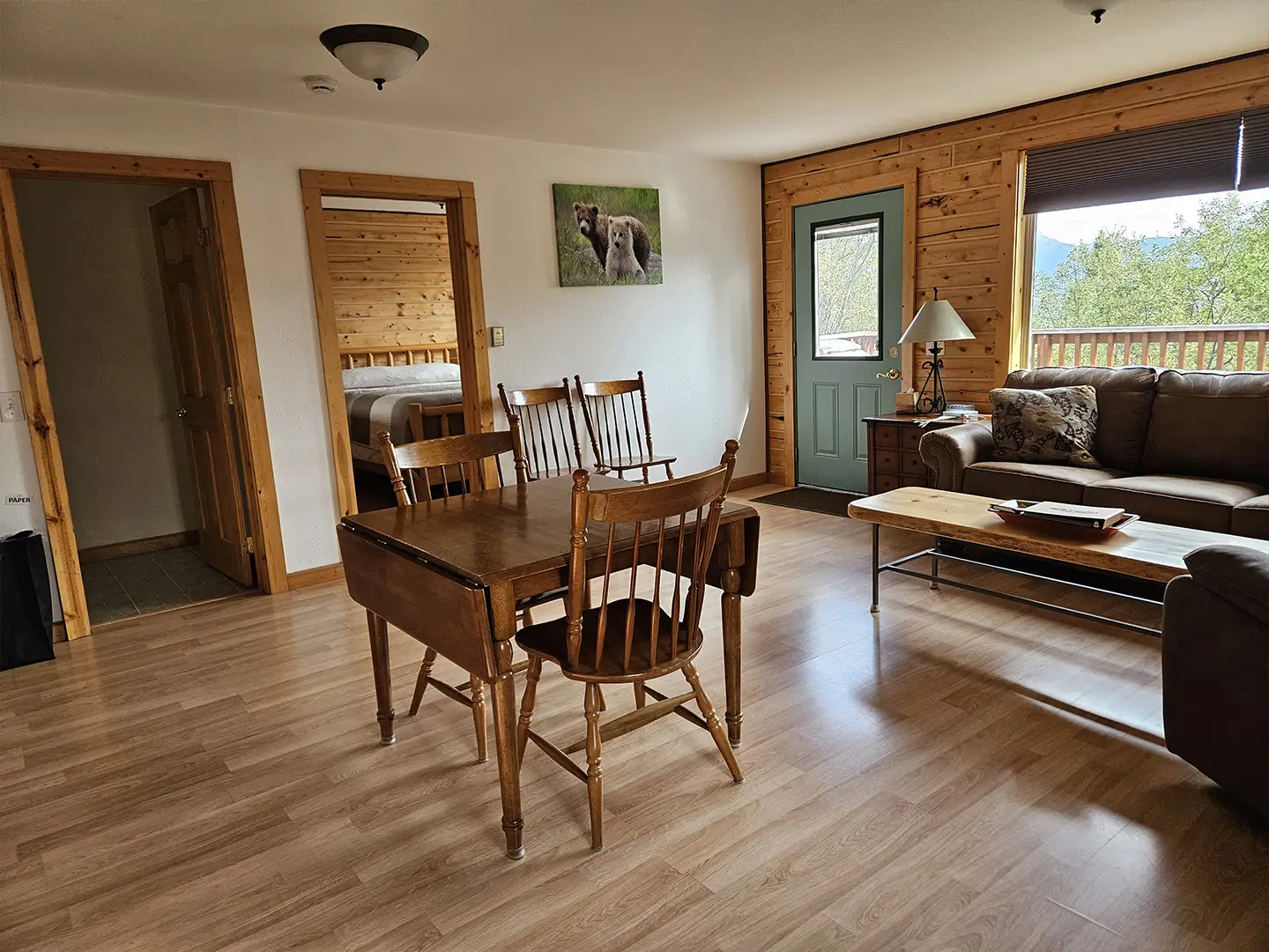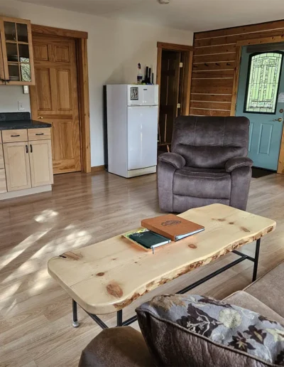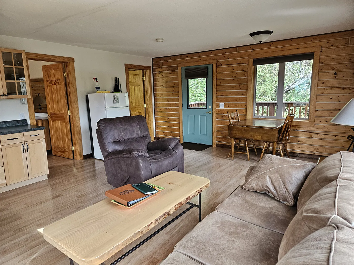 The Kennicott is the sixth and final cabin in our collection, named for the glacial Kennicott River, which carries silty meltwater from the Kennicott and Root Glacier through the heart of Wrangell–St. Elias National Park. The river’s distinctive milky color comes from finely ground rock—known as glacial flour—created as the glacier slowly grinds its way through the valley. Thoughtfully designed at 525 square feet, the private deck offers excellent views of our property and the Chugach Mountains. Inside, you’ll find a welcoming living room area with a sleeper sofa, a comfortable queen bedroom, a full kitchen, and a private bathroom—everything you need for a quiet, well-appointed stay surrounded by Alaska’s vast wilderness.