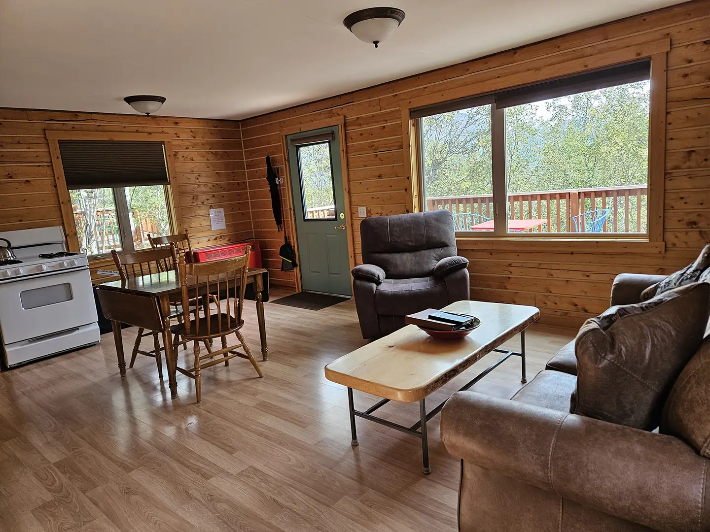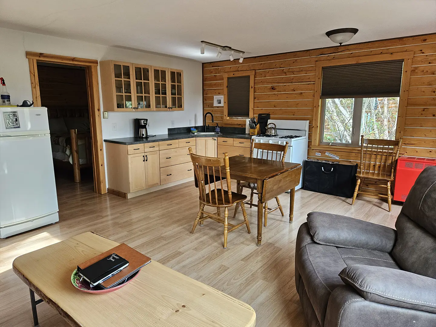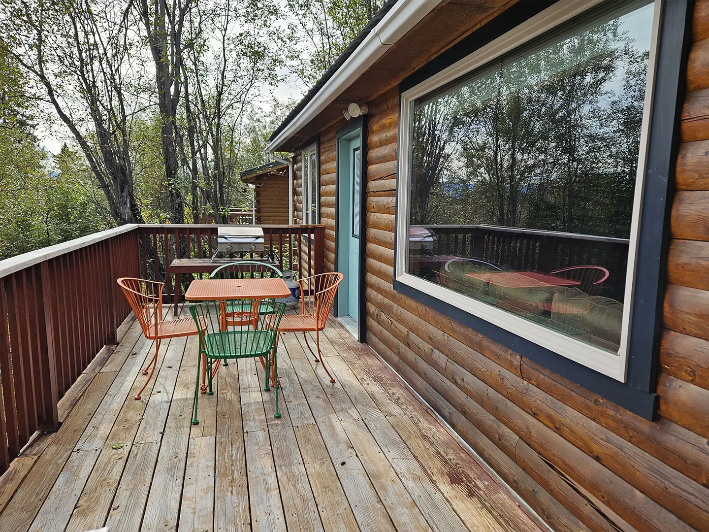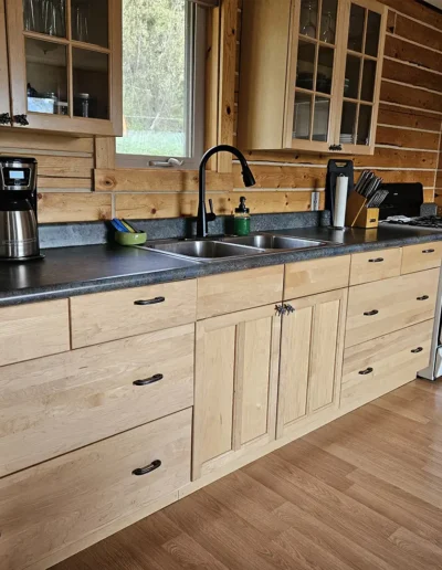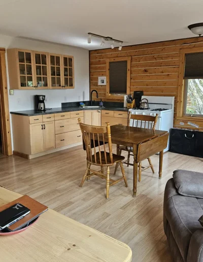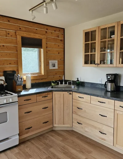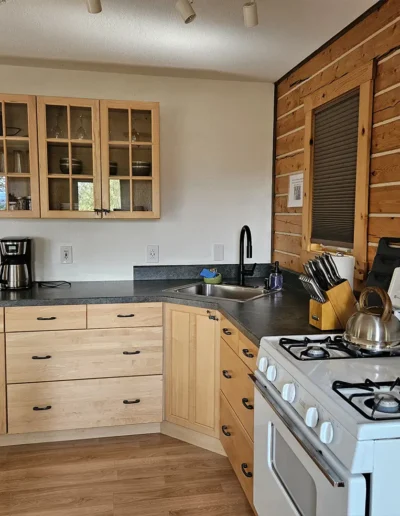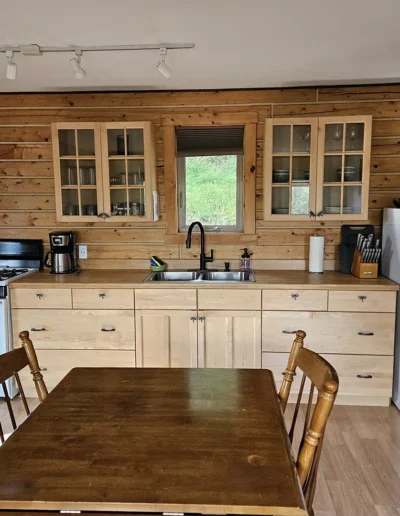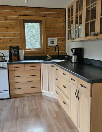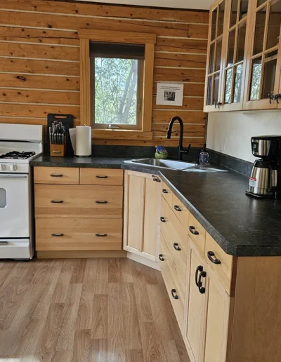 All cabins are equipped with a fridge, range/oven, kitchen utensils, a grill on the deck, and umbrellas. We also offer free WiFi in each guest house. The cabins have power 24/7 and can run a CPAP machine if needed. We can provide a queen sized blow-up mattress or cot if needed. There is no toaster or hair dryer provided to avoid unnecessary pull on our off-grid electrical system.