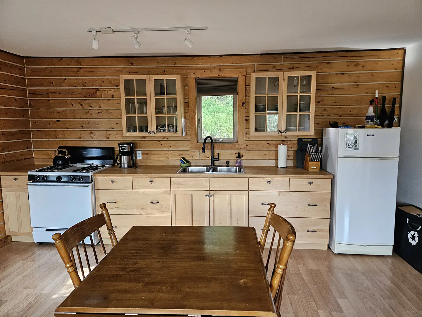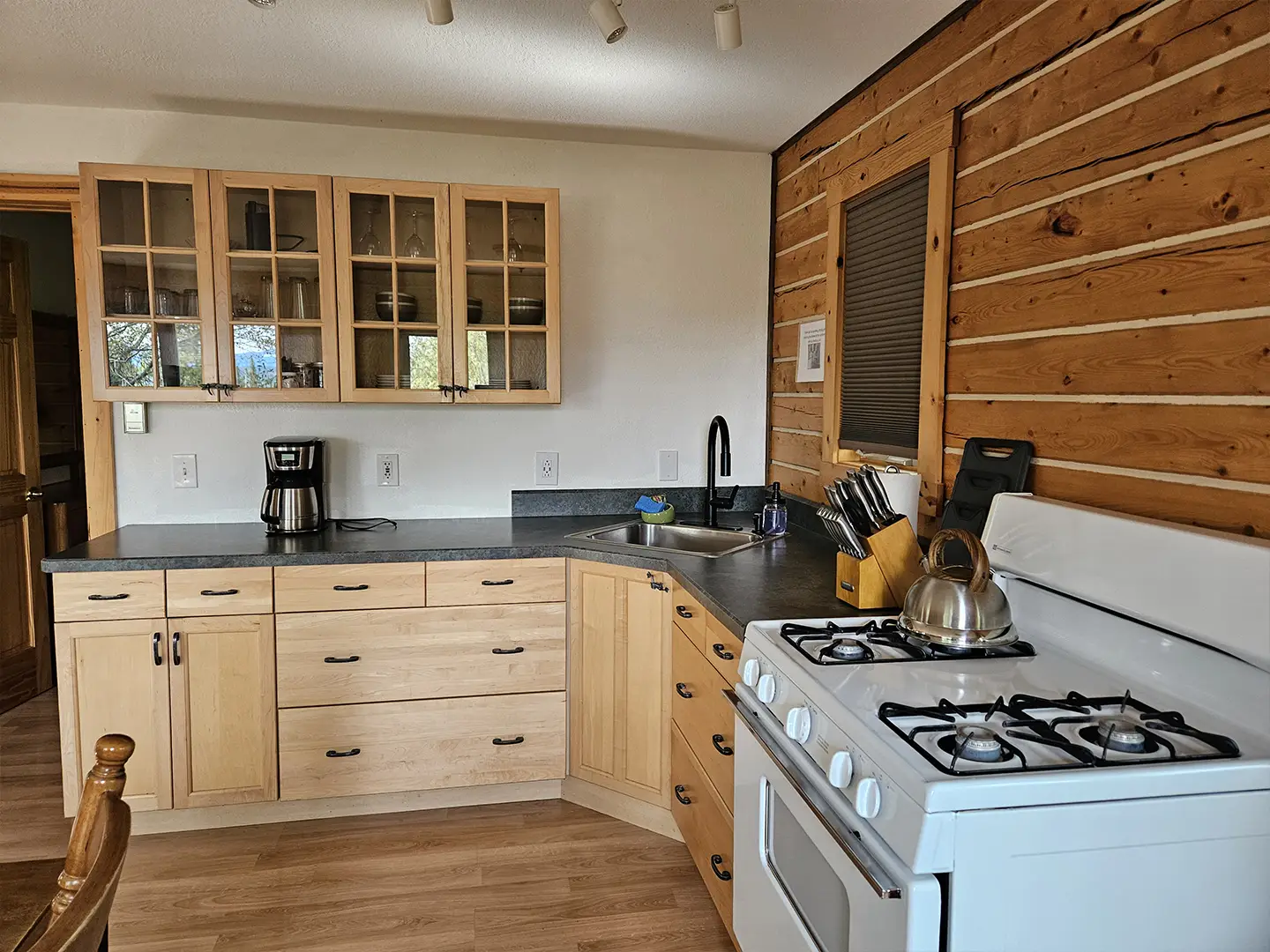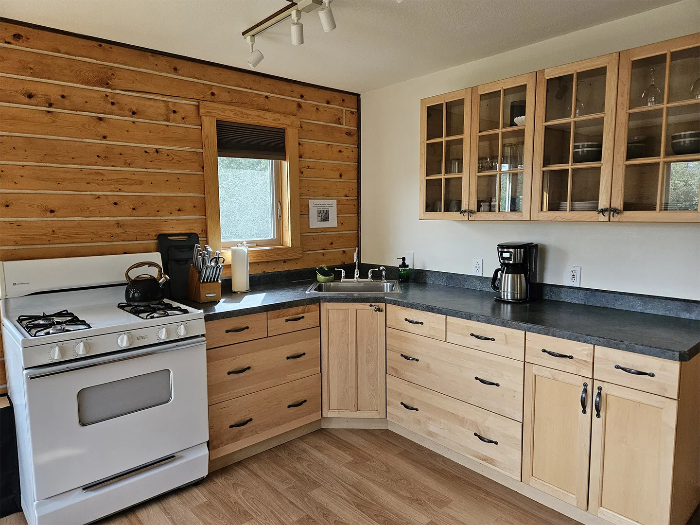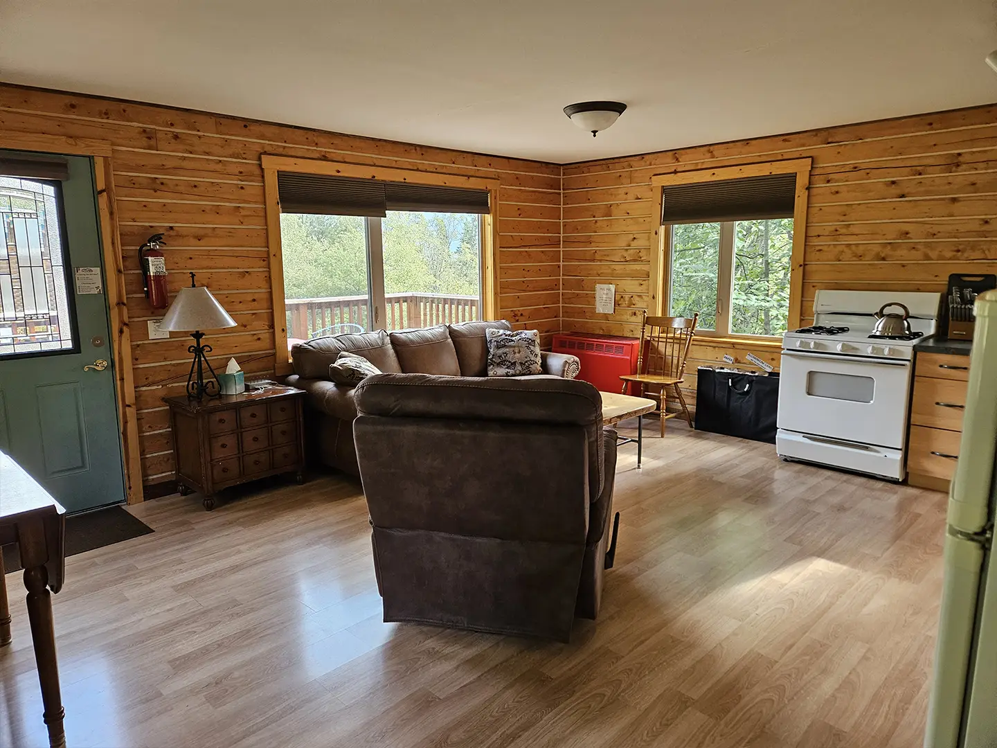 All cabins are equipped with a fridge, range/oven, kitchen utensils, a grill on the deck, and umbrellas. We also offer free WiFi in each guest house. The cabins have power 24/7 and can run a CPAP machine if needed. We can provide a queen sized blow-up mattress or cot if needed. There is no toaster or hair dryer provided to avoid unnecessary pull on our off-grid electrical system.