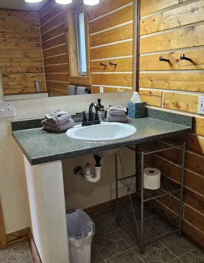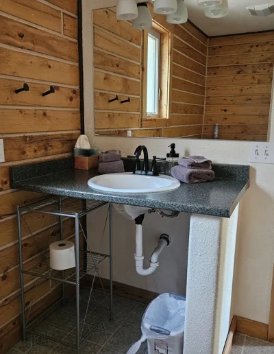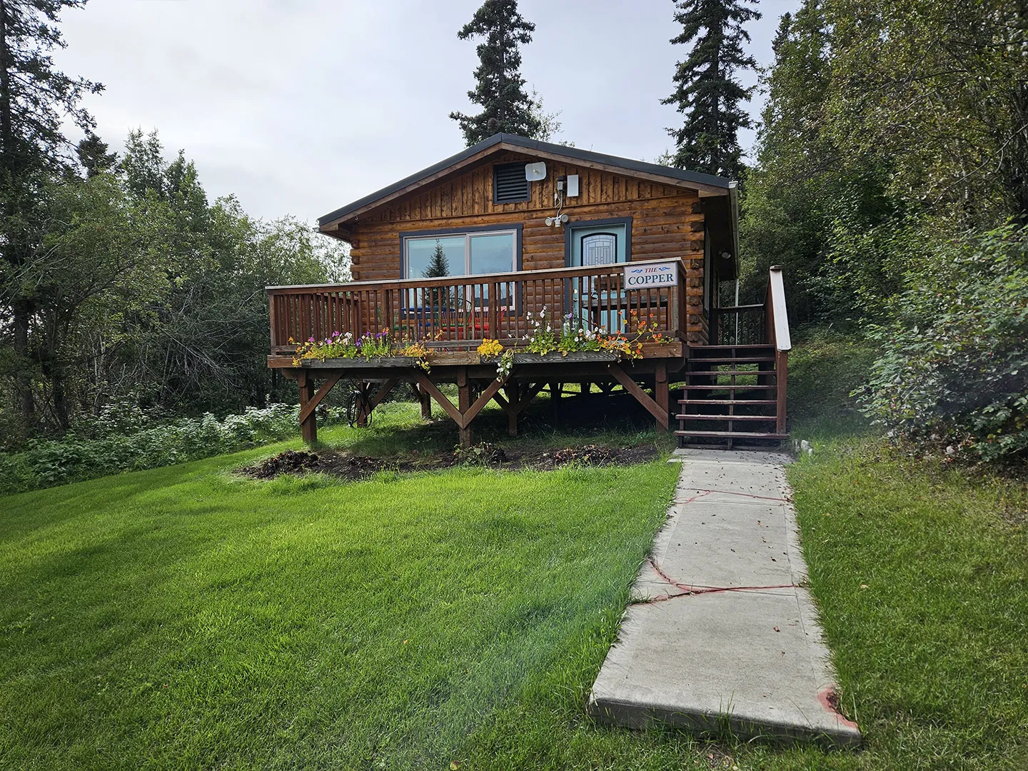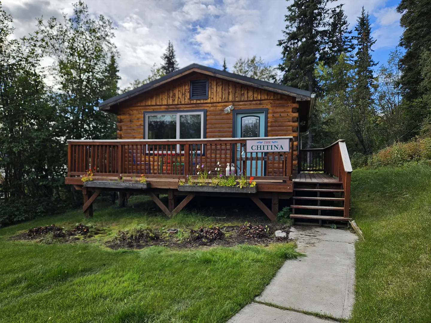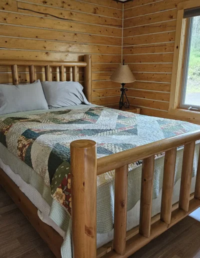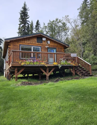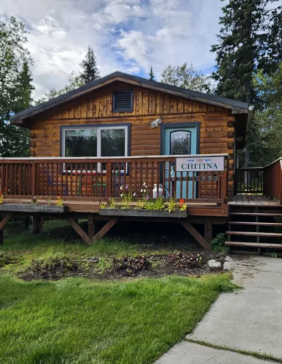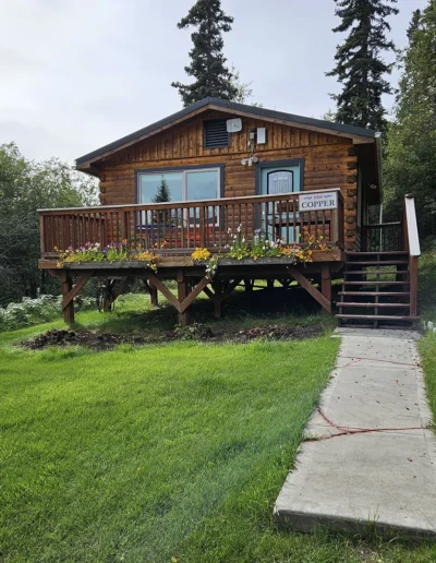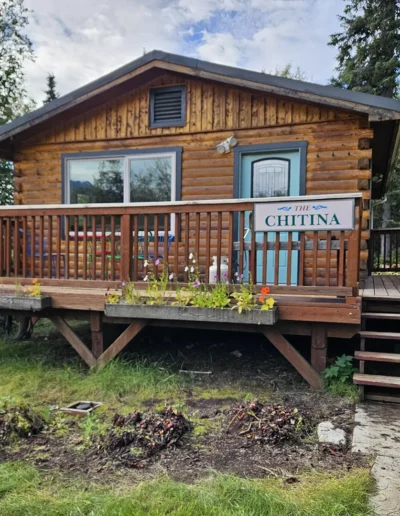 The Chitina is the second of our six cabins, named for the historic Chitina River, a powerful tributary of the Copper River that flows through the heart of Wrangell–St. Elias National Park. In the early 1900s, the town of Chitina served as a major transportation hub and the midpoint of the Copper River & Northwestern Railway, linking the interior to the coast during Alaska’s copper mining boom. Thoughtfully designed at 525 square feet, the cabin features a sloped front lawn, a private deck, and is tucked in slightly more from the other cabins. Inside, you’ll find a welcoming living room area with a sleeper sofa, a comfortable queen bedroom, a full kitchen, and a private bathroom—everything you need for a quiet, well-appointed stay surrounded by Alaska’s vast wilderness.