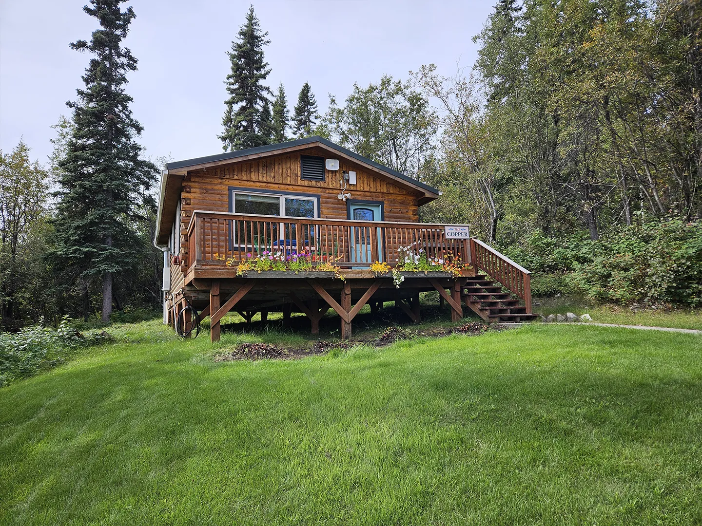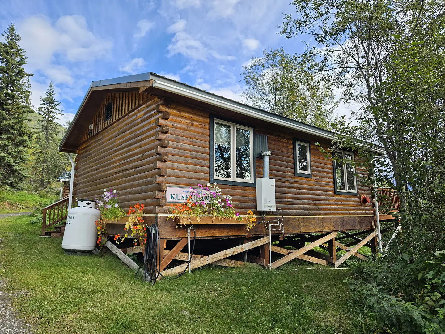 Our spacious, smoke free guest houses offer the “creature comforts” that will help you relax after a great day of fun exploring in the Wrangell St. Elias National Park and Preserve. All six of our guest houses are custom designed Alaskan style log homes. They all have a full kitchen, private bath and a private bedroom with a luxurious queen bed and power 24/7. We also offer free, high speed WiFi in each guest house.