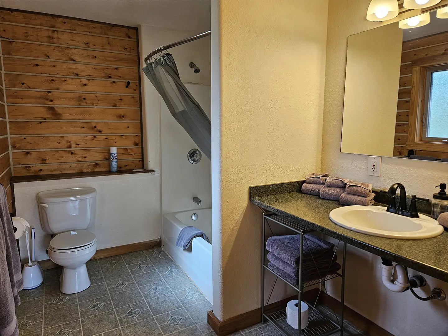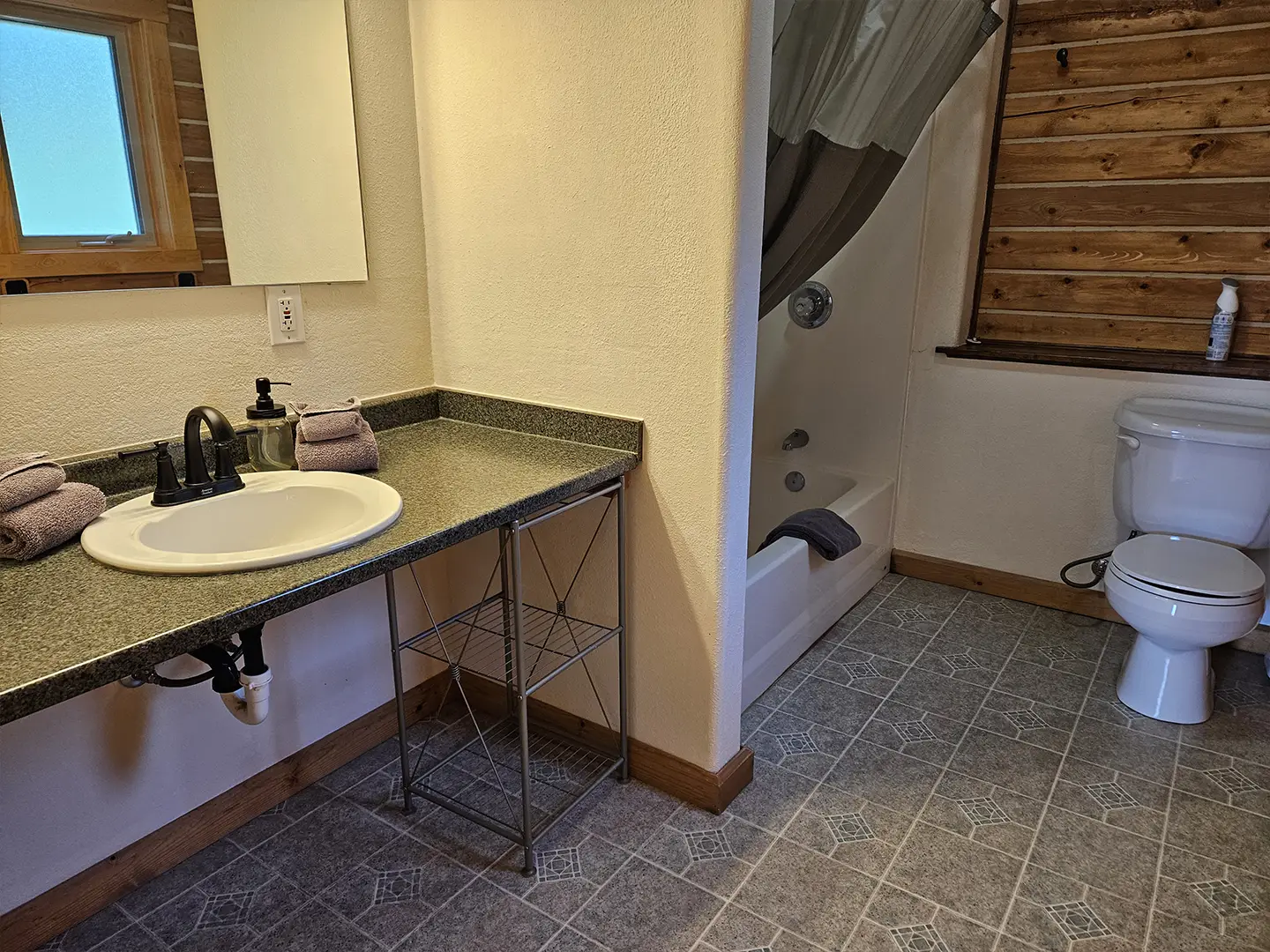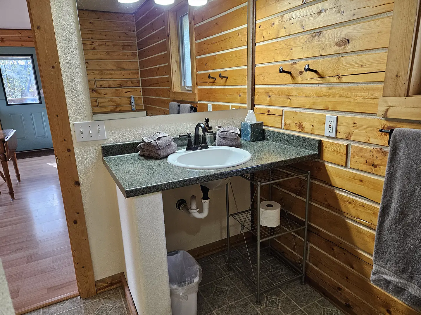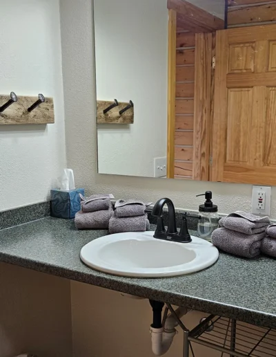 The cabin is equipped with a fridge, range/oven, kitchen utensils, a grill on the deck, and umbrellas. We also offer free WiFi in each guest house. The cabin has power 24/7 and can run a CPAP machine if needed. We can provide a queen sized blow-up mattress or cot if needed. There is no toaster or hair dryer provided to avoid unnecessary pull on our off-grid electrical system.