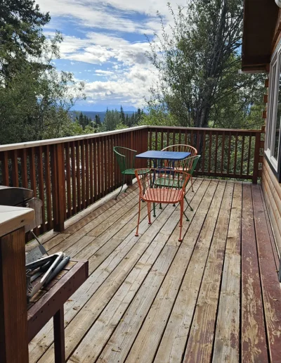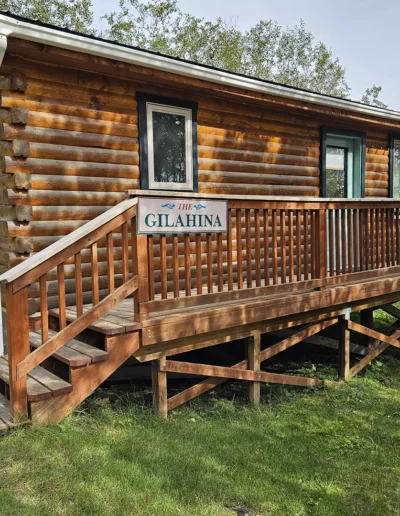 The Gilahina is the fourth of our six cabins, named for the historic Gilahina River, a lesser-known but important tributary within Wrangell–St. Elias National Park. Just upstream stands the Gilahina Trestle, once the highest wooden railroad bridge in the world when it was completed in 1911 as part of the Copper River & Northwestern Railway—an enduring symbol of the region’s early engineering ambition. Thoughtfully designed at 525 square feet, the private deck offers excellent views of Porphyry Ridge. Inside, you’ll find a welcoming living room area with a sleeper sofa, a comfortable queen bedroom, a full kitchen, and a private bathroom—everything you need for a quiet, well-appointed stay surrounded by Alaska’s vast wilderness.